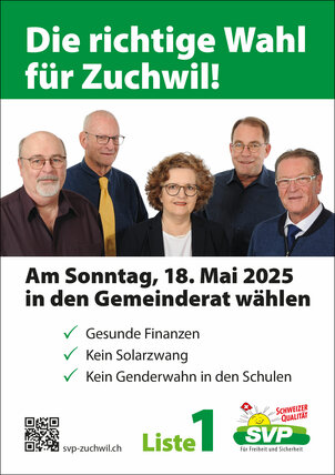 10.03.21 Silvio Auderset, Präsident: Für die Gemeinderatswahlen vom 25. April 2021 konnten wir leider keine Frau finden. Das hat damit zu tun, dass zwei ausgewiesene SVP-Frauen Zuchwil bereits wieder verlassen haben. Mit Stolz stelle ich Ihnen unsere engagierten Kandidaten vor (von links nach rechts): Roland Sieber neu; Carlo Rüsics bisher; Günther Thalmann neu; Markus Mottet bisher; Bruno Vögtli neu; Jonas Mottet neu. weiterlesen
